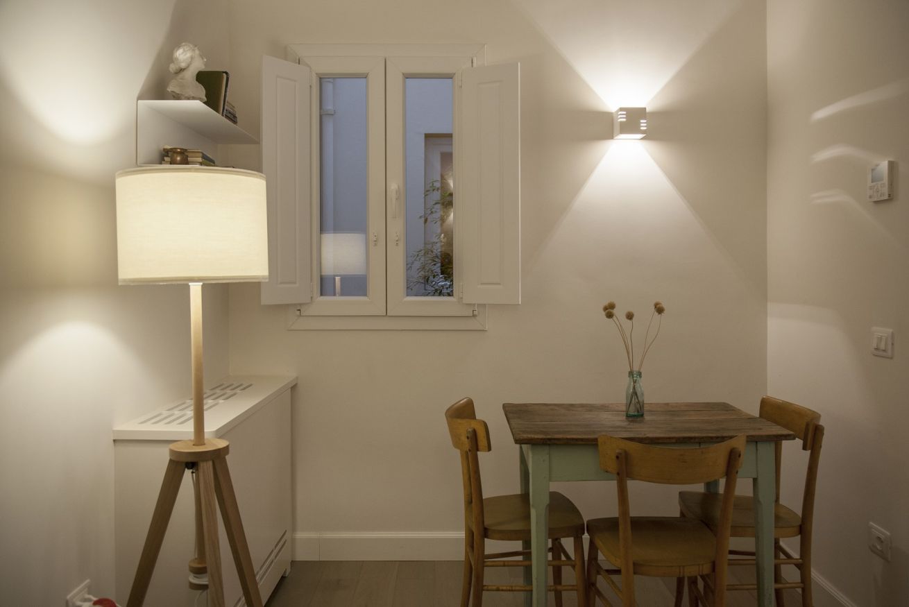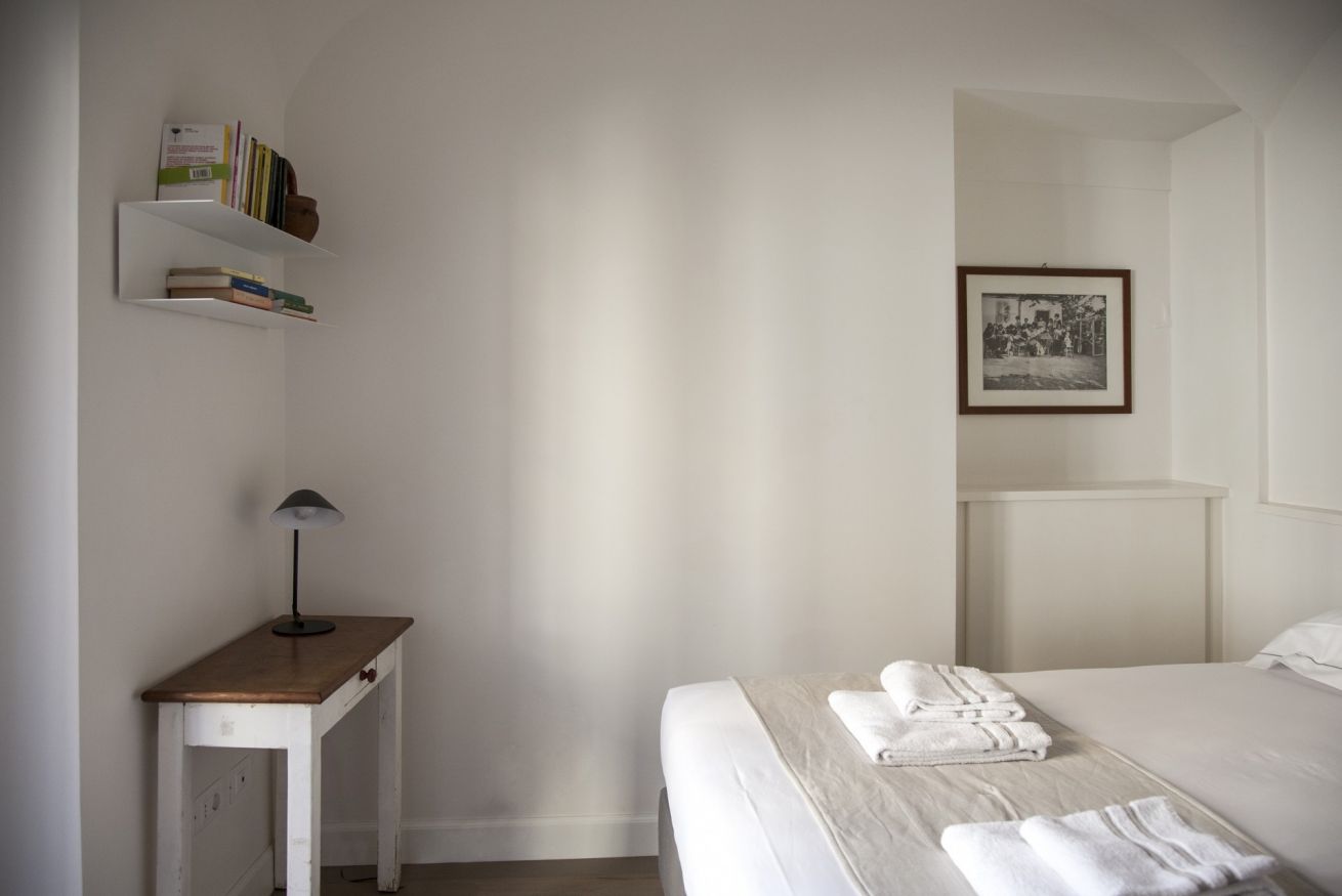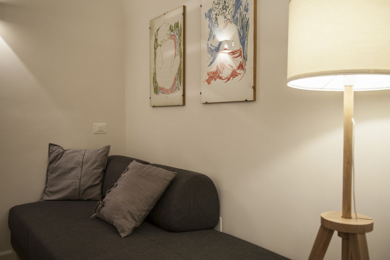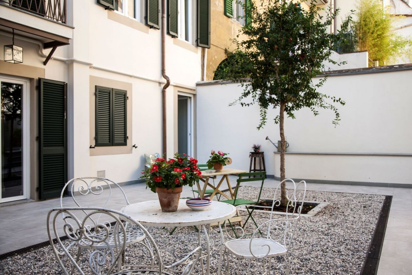 Nella camera da letto c’è un piccolo balcone che affaccia sulla tranquilla corte interna e sui caratteristici tetti di Firenze.